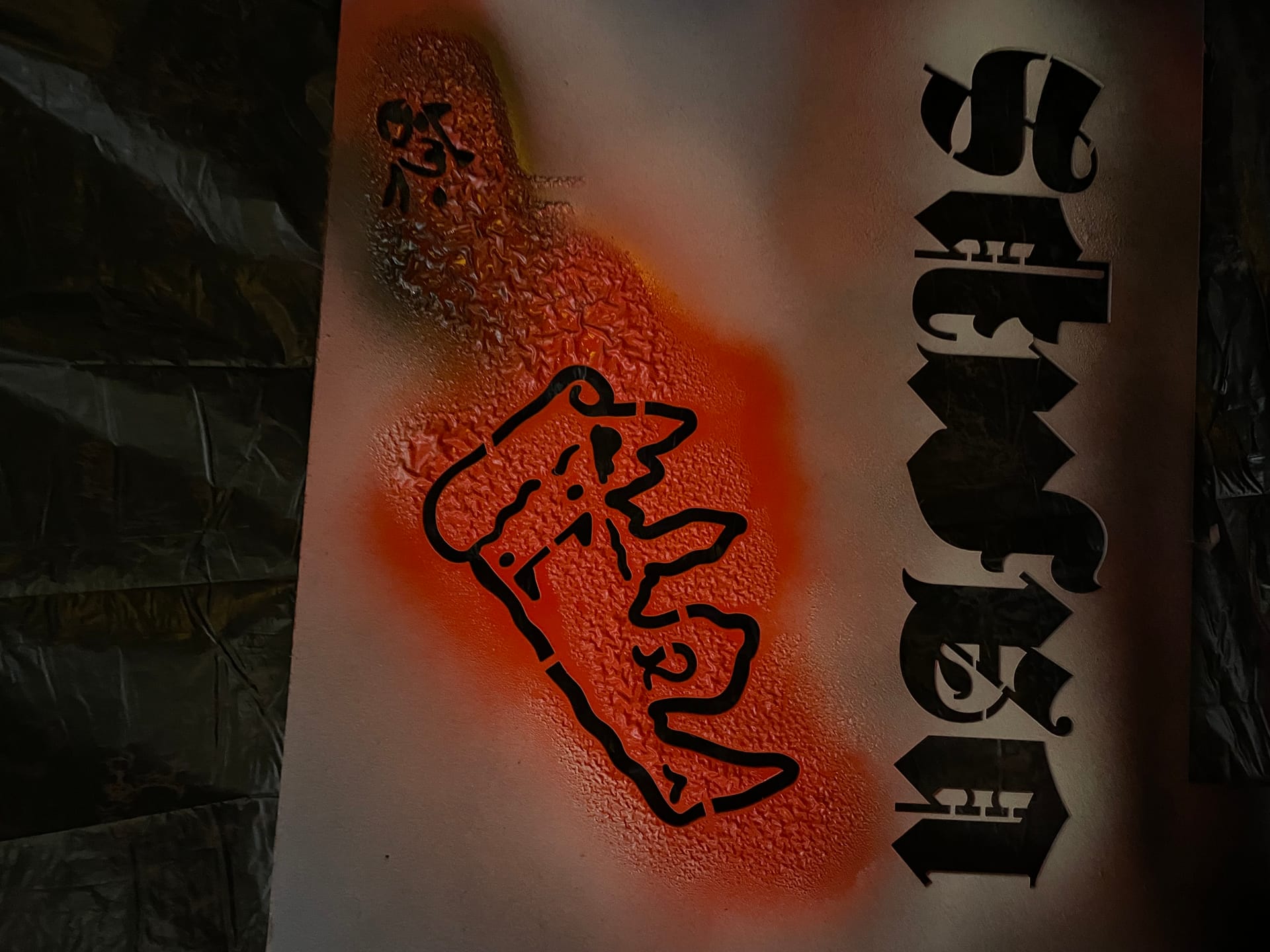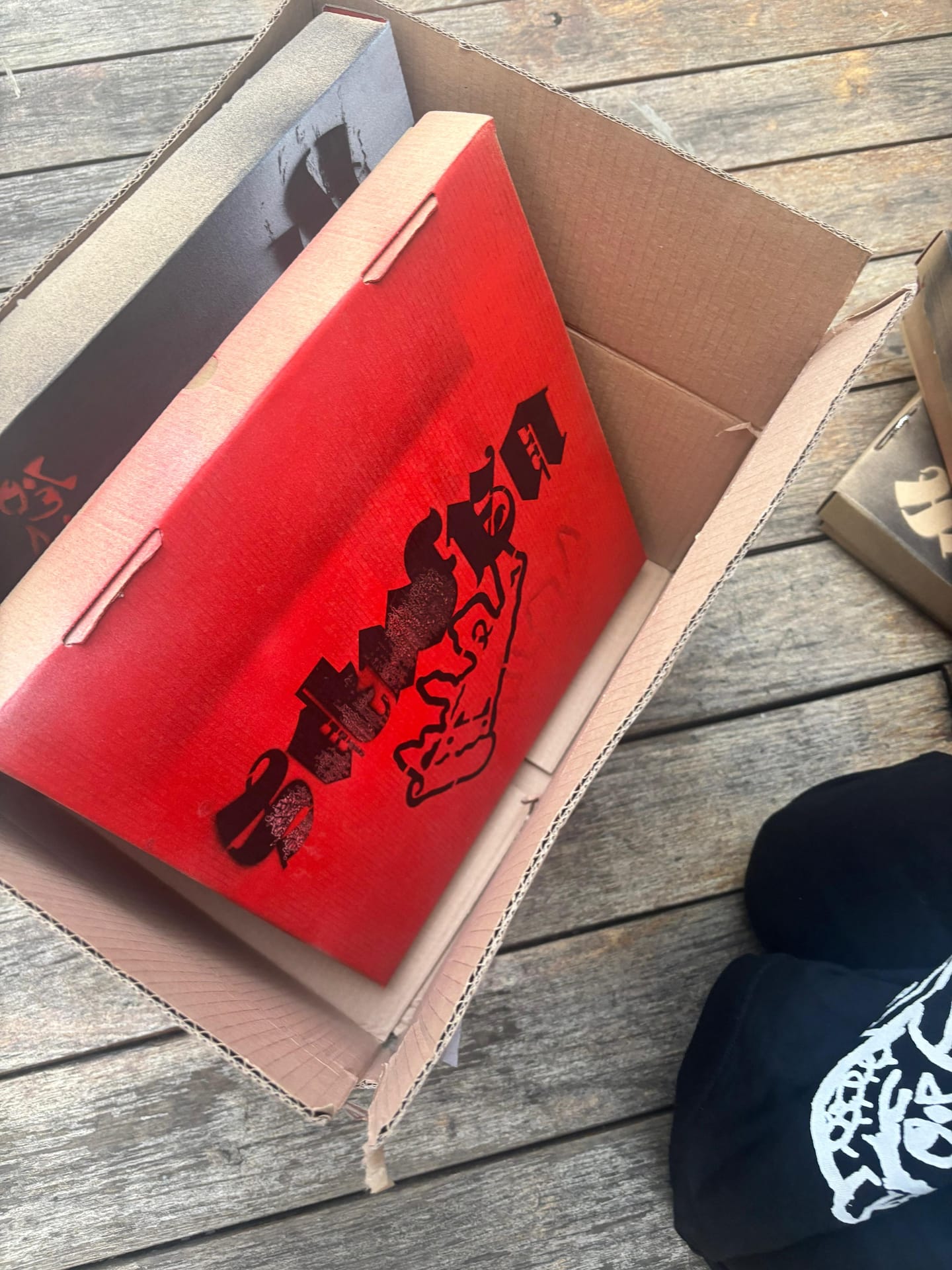 Qué tiene que ver una caja de pizza con un día de cole? Nada, pero la pizza box de VAMPS va por su cuenta. Cajas, sprays, joyería — anillos de colmillos, pulseras de pedrería negra, colgantes tribales — stencils de metacrilato. Basic tuff